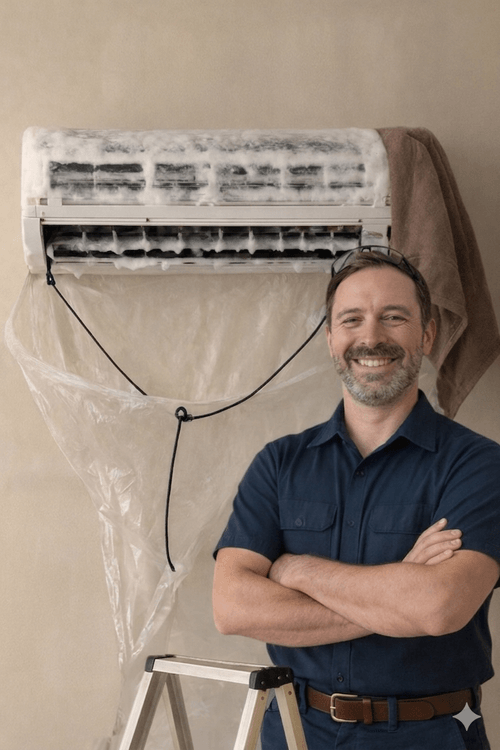 Avant de commencer, nous vérifions l’état de votre thermopompe pour nous assurer qu’elle fonctionne bien. Ensuite, nous protégeons votre espace pour éviter tout dégât pendant le nettoyage.